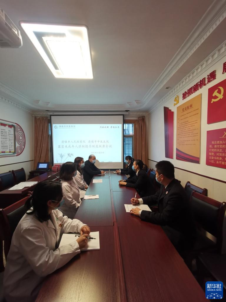 12月16日,貴州省清鎮(zhèn)市檢察機(jī)關(guān)與醫(yī)療機(jī)構(gòu)召開聯(lián)席會(huì)議,研究推進(jìn)醫(yī)療機(jī)構(gòu)落實(shí)侵害未成年人案件強(qiáng)制報(bào)告制度。新華社發(fā)(杜遠(yuǎn)敏 攝)
